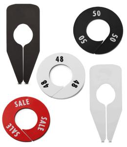 Märkbrickor, storleksavskiljare, färgskivor och hanger banner