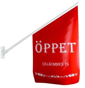 400x630 mm. Inklusive flaggfot i plast, självhäftande/skruvfäste samt knopp.
