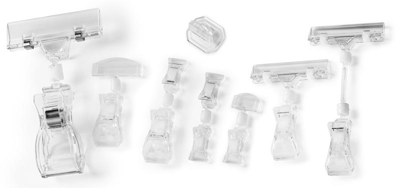 Skyltklämma med stor + liten nypa. Längd 115 mm, bredd 22/25 mm. Klämma 1-10 mm, samt 1-35 mm.