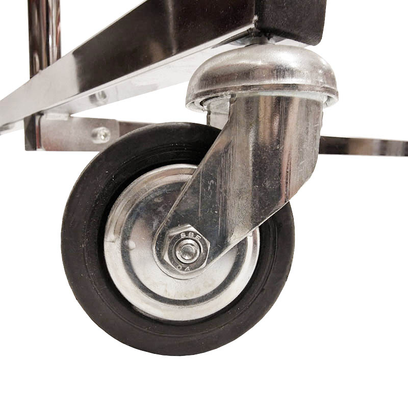 Längd 1430/2050 mm, två utdrag á 310 mm, höj- och sänkbart 1460-2160 mm. Bredd 500 mm. 80 mm länkhjul, varav två stycken med broms.