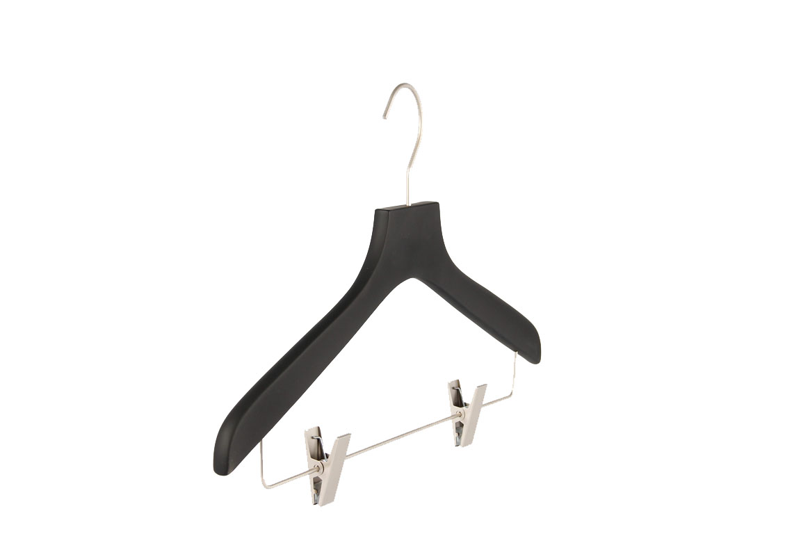 Svart gummerad trägalge med clips.