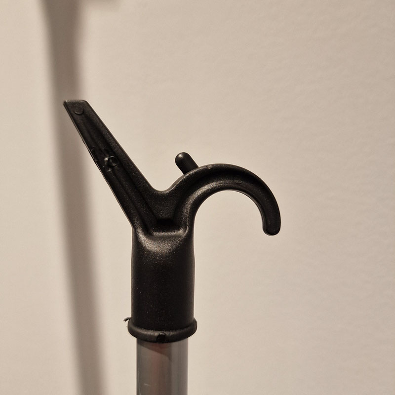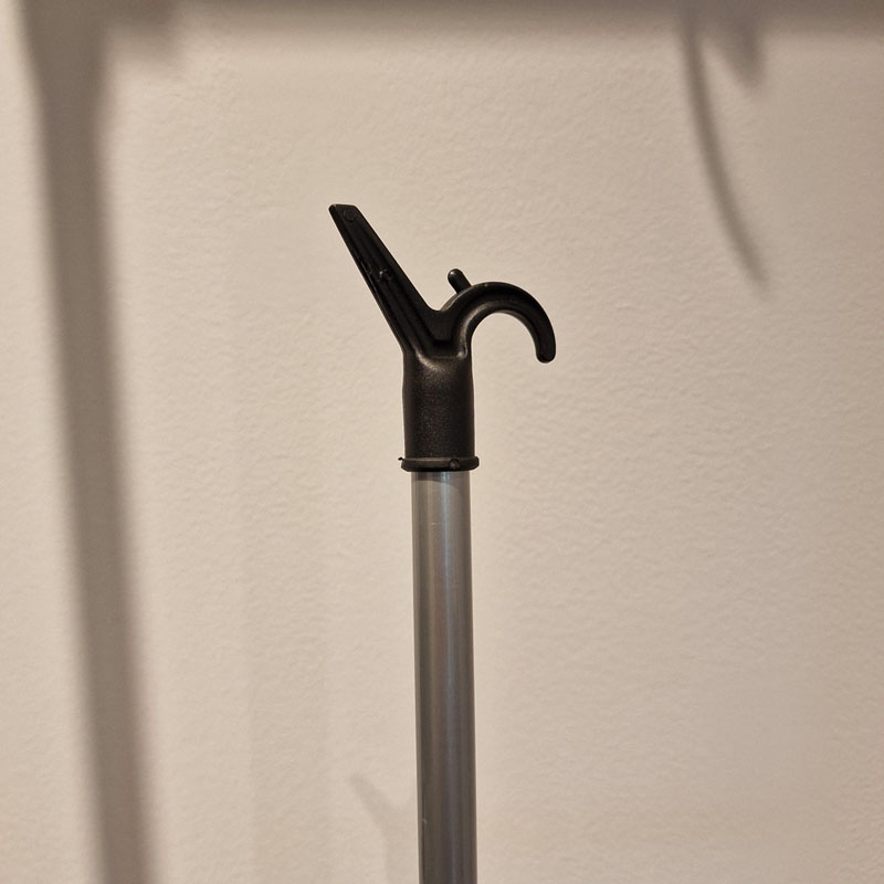 Ett bra hjälpmedel för att ta ner högt hängande plagg i butik eller garderob. Teleskop 860-1530 mm.