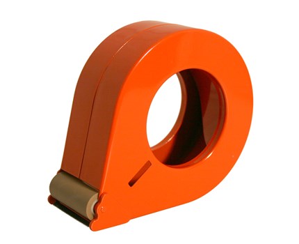 För tejp med max 50 mm bredd. Praktiskt tejphållare i lackerad stålplåt. Grovtandad och härdad kniv.