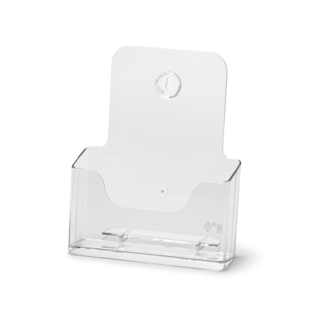 Broschyrfack A4 för vägg. Akryl. Bredd 220mm, höjd 300 mm, djup 40/100 mm. Kan även användas stående på bord.