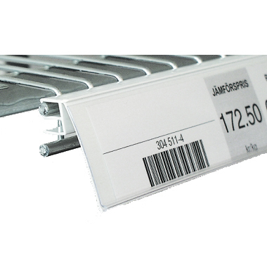 Svart etikettlist i plast. Längd 885 mm, höjd 26 mm. Passar på trådkorgar och trådhyllor.