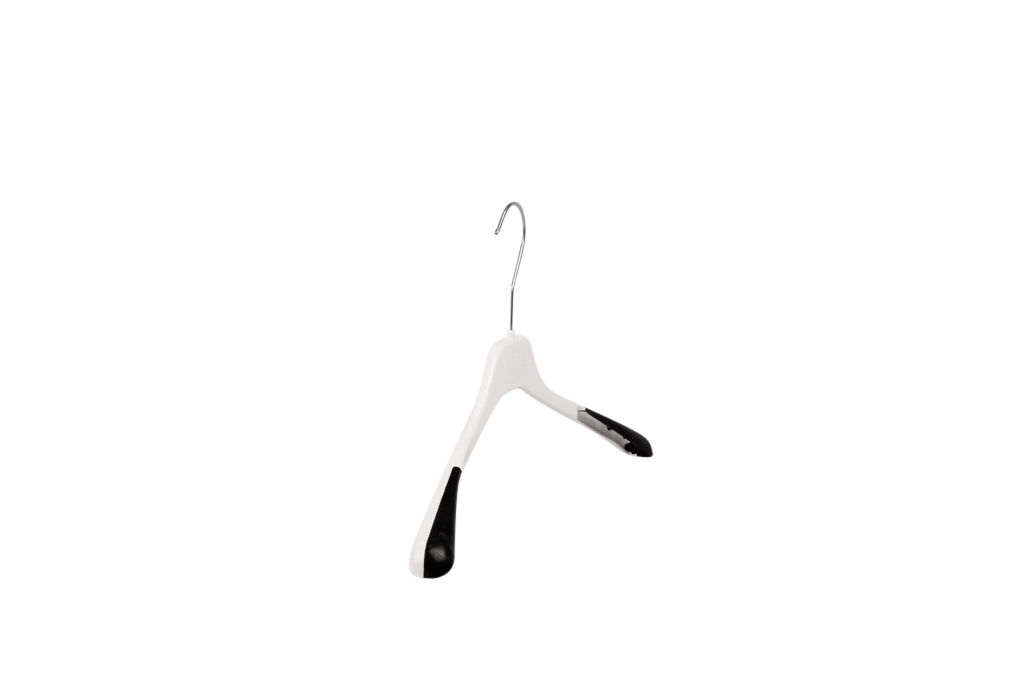 Vit klädhängare för lättare konfektion.