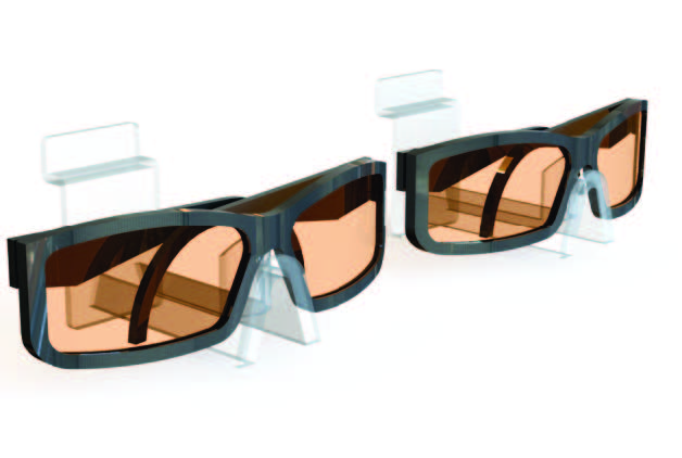 Glasögonhållare till spårpanel. Bredd 40 mm, djup 48 mm. Akryl.