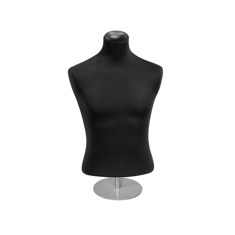 Svart kort herrbyst inklusive slät svart topp och rund fot metall.