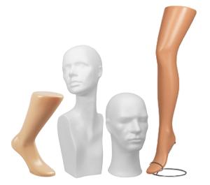 Dessa olika typer av kroppsformer och skyltdockor används för att effektivt presentera kläder och underkläder i butiksmiljöer och andra sammanhang där visuell representation av kläderna är viktig. Valet av docka eller form beror på vilka kläder som ska visas och vilket estetiskt uttryck som önskas.
