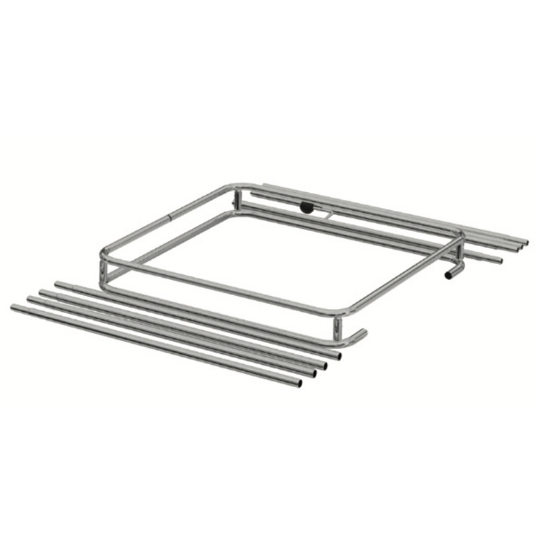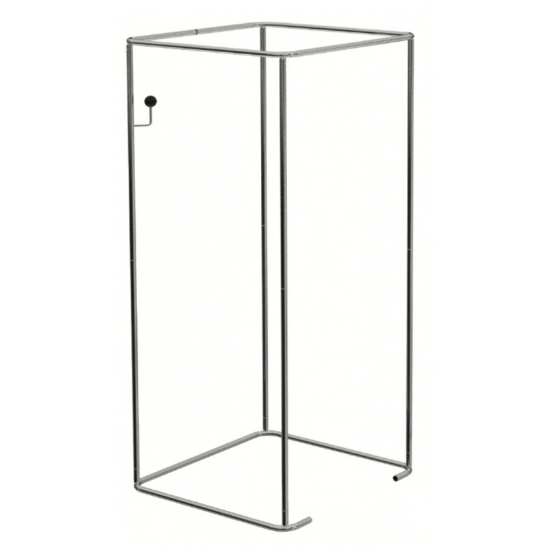 Mobilt fristående provrum byggt av 25 mm kromade rör.