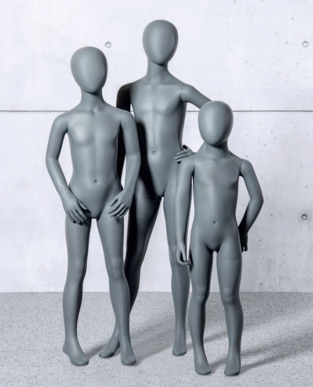 Skyltdocka med abstrakt ansikte i grå färg. Inklusive fotplatta i glas + fot- och vadfäste.