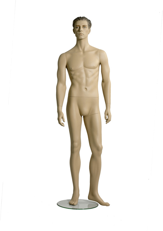 Hudfärgad glasfiberdocka med skulpterat hår och ansikte med makeup. Inklusive glasfot Ø420 mm och fotfäste.