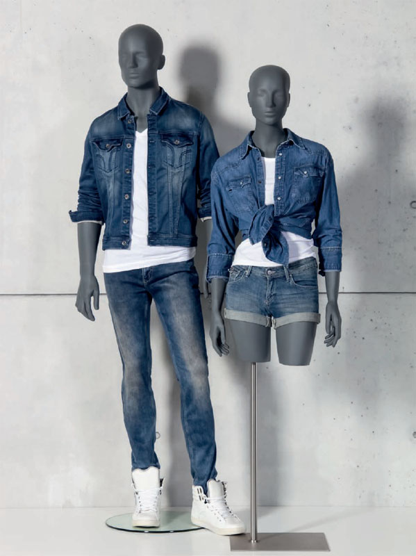 Skyltdocka Semiro. Grå med extra tålig nanoyta. Inklusive fotplatta i glas och fot samt vadfäste.