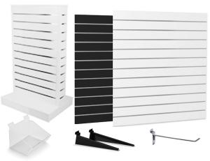 • Ett system av paneler med spår eller räfflor, ofta använda för butiksinredning. Du kan hänga olika tillbehör som spjut, hyllor och displayelement i spåren. Finns i både vit och svart färg.
