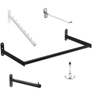 • Tillbehör som spjut, frontarmar, hyllor och konsoler som skruvas direkt i vägg. Praktiskt om man vill fästa exempelvis en enskild frontarm var som helst på väggen. Finns i vit och svart färg.
