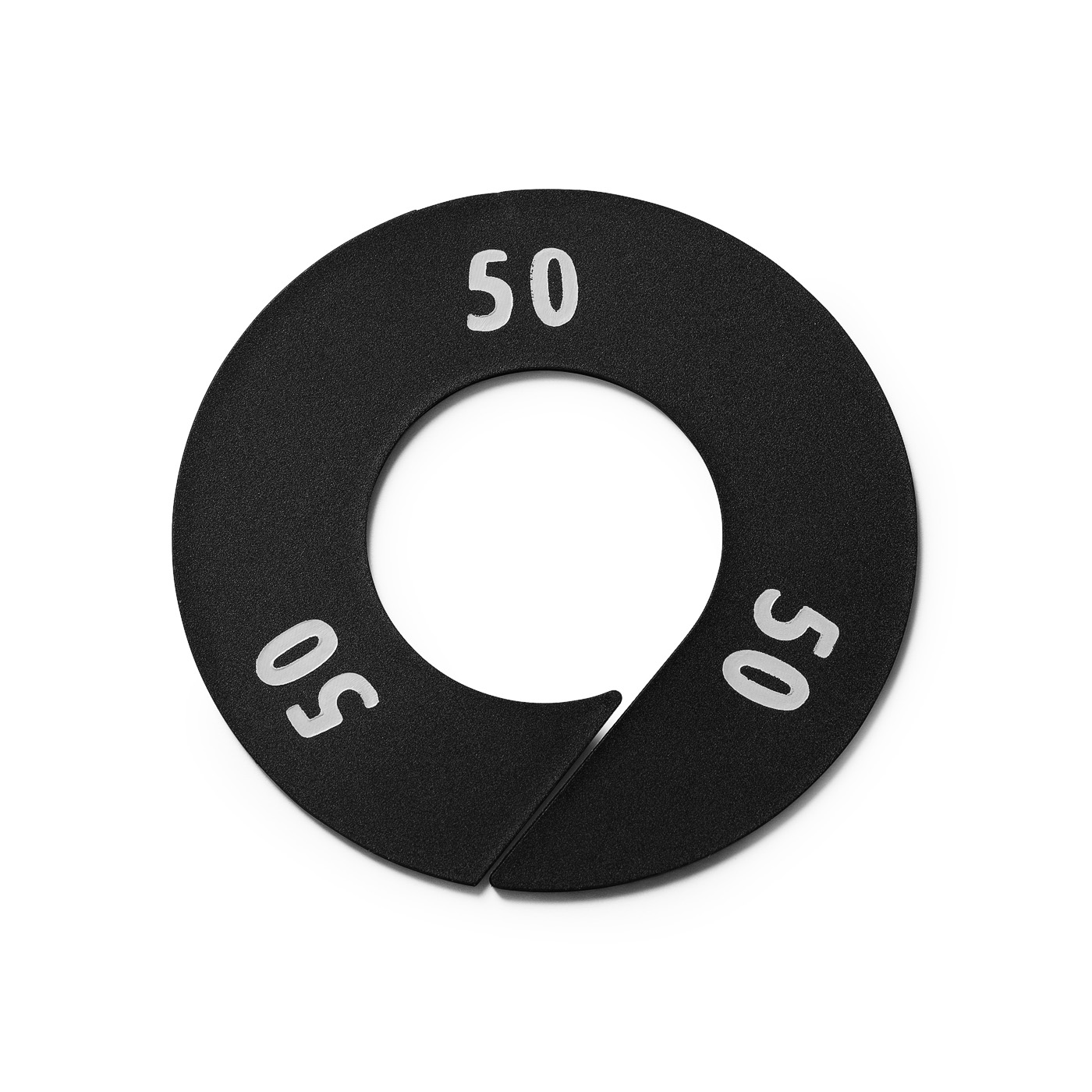 Svart med vitt tryck. Hål 40 mm. Utvändig diameter 90 mm. Tryck på båda sidor. Ange storlekar i meddelandefältet i kassan.