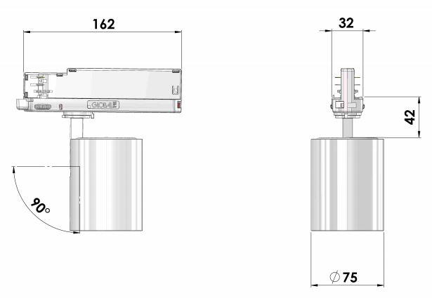 - Levereras med adapter för 3-fas Global Trac Pro skena.